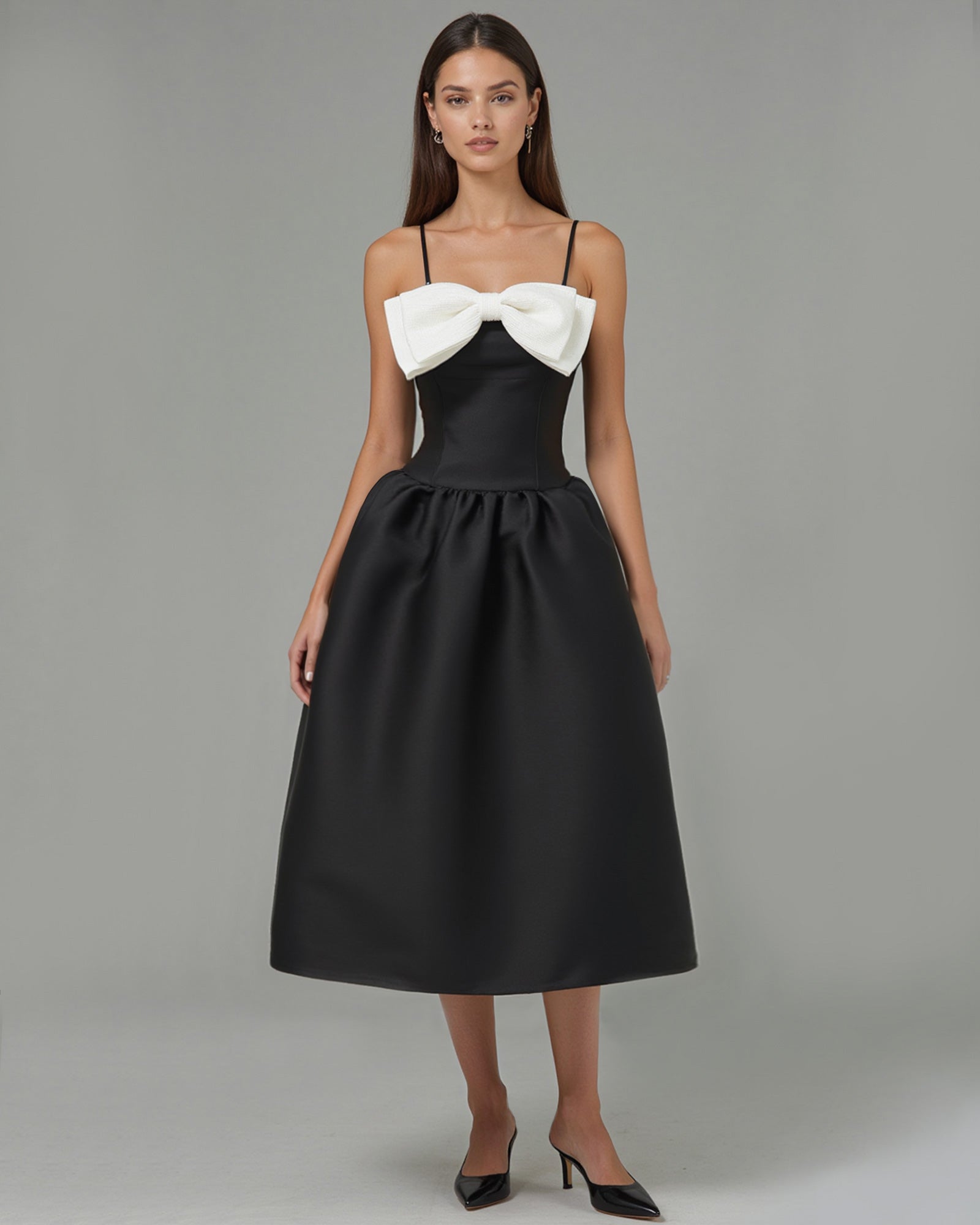 Scarf Asymmetric Corset Maxi Dress - Black & White