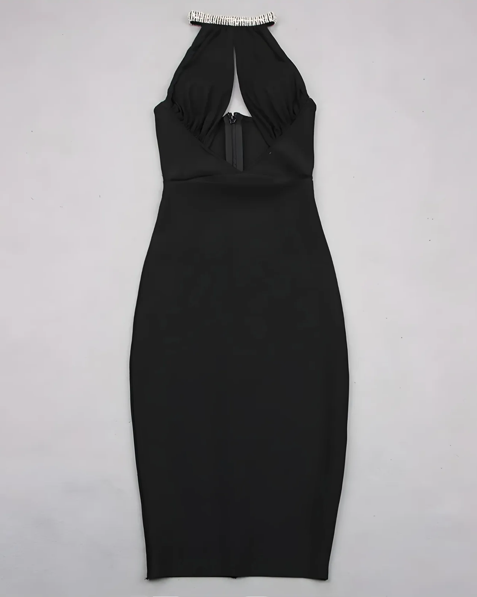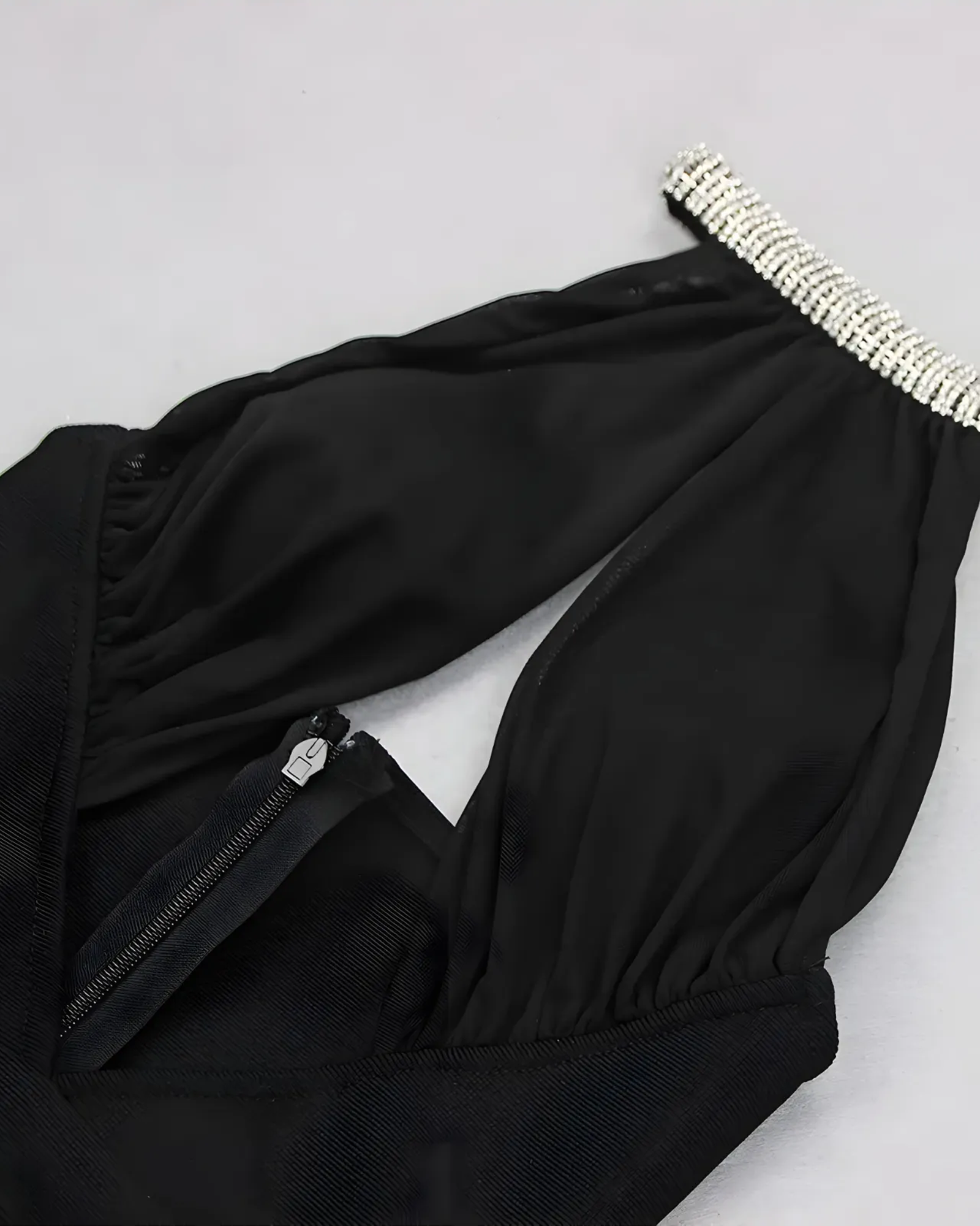 Crystal Pleated Backless Maxi Dress - Silver Grey