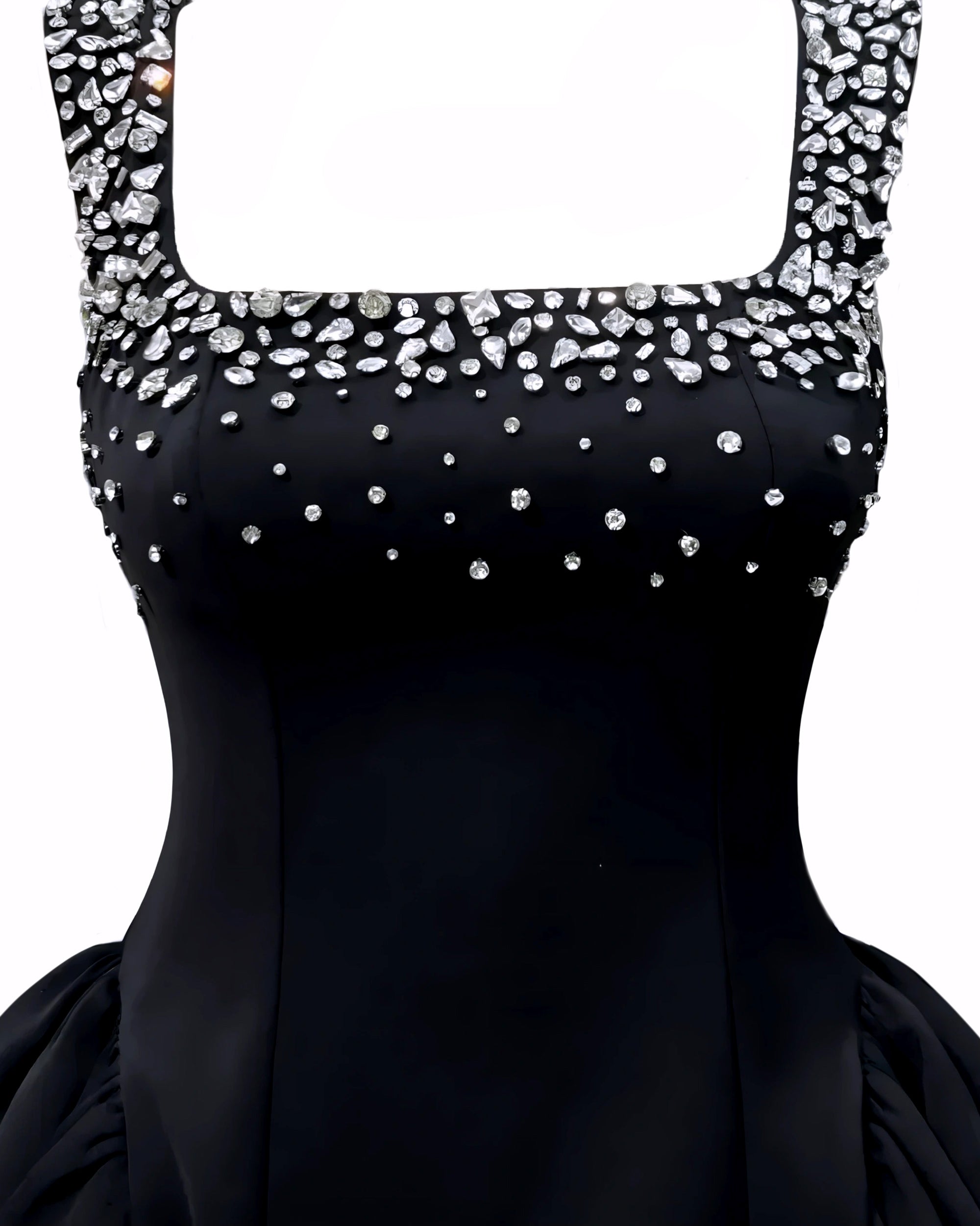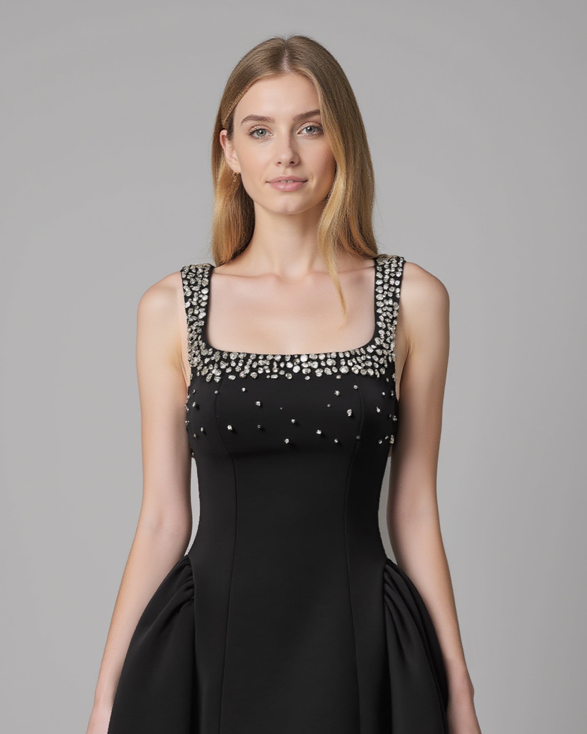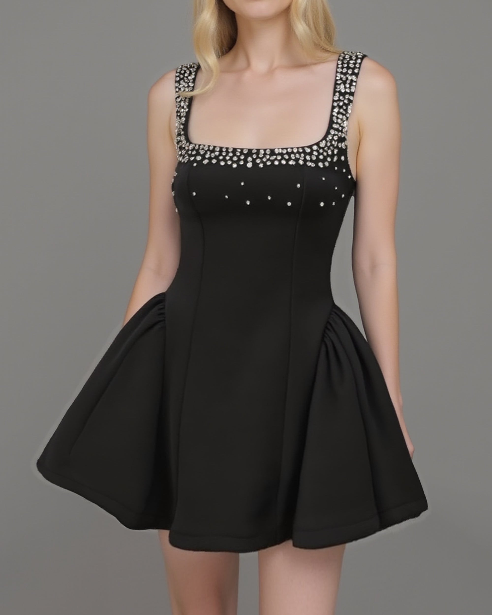 Diamante Embellished Flared Mini Dress - Black