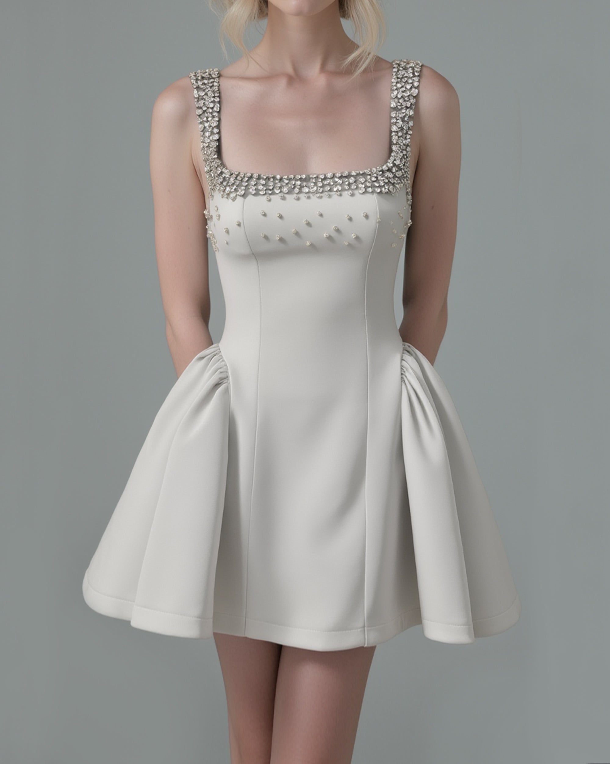 Diamante Crystal Structured Mini Dress - Grey