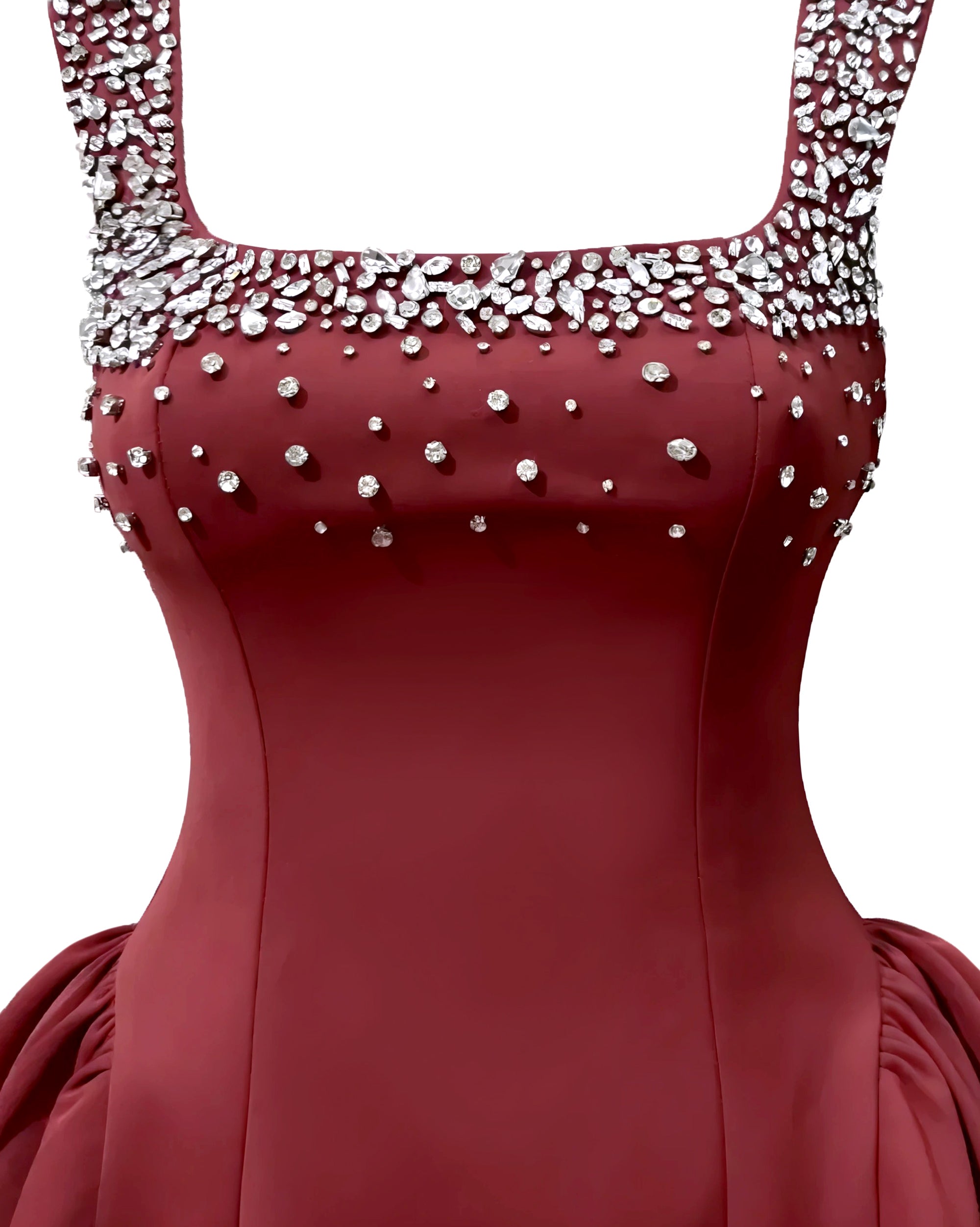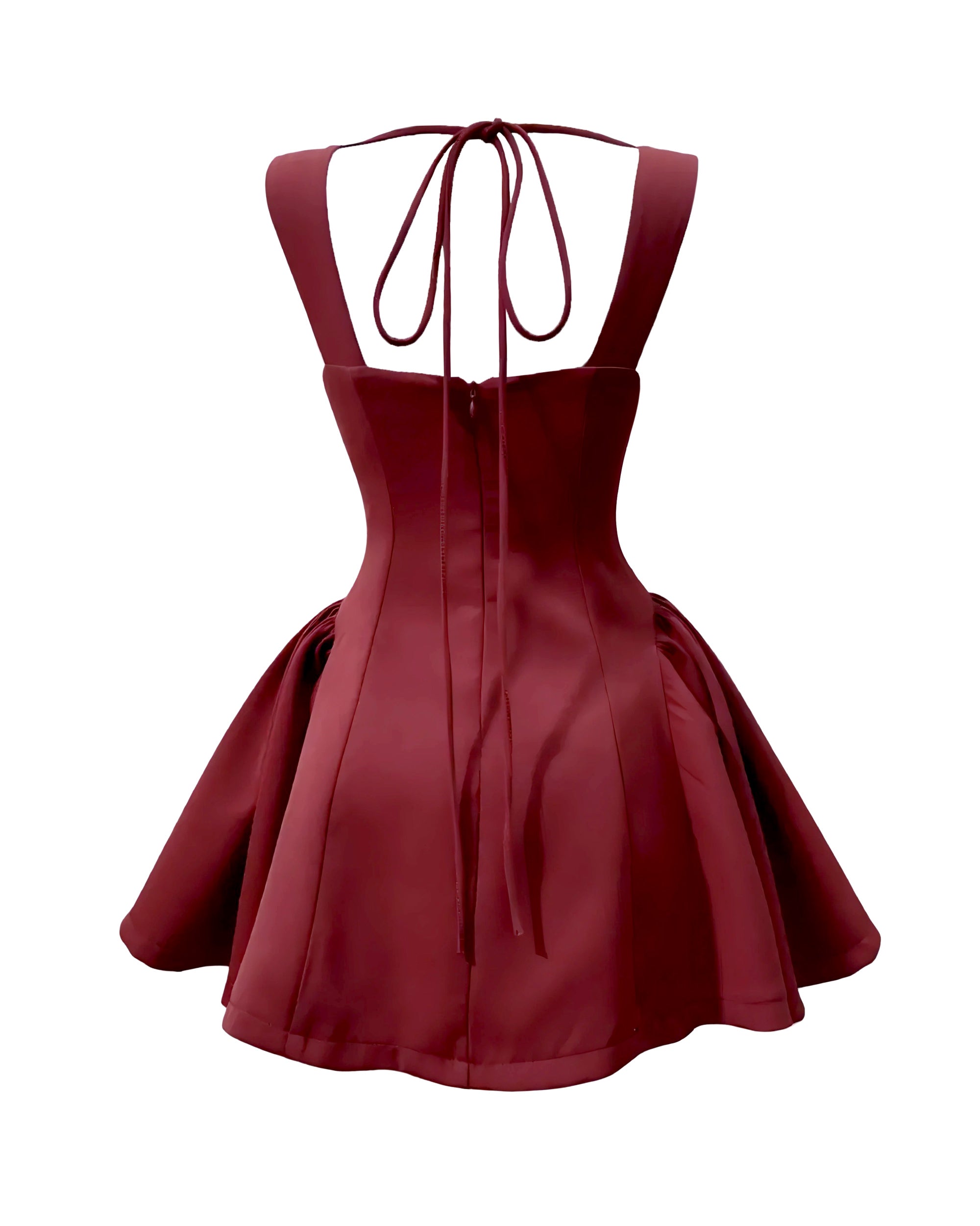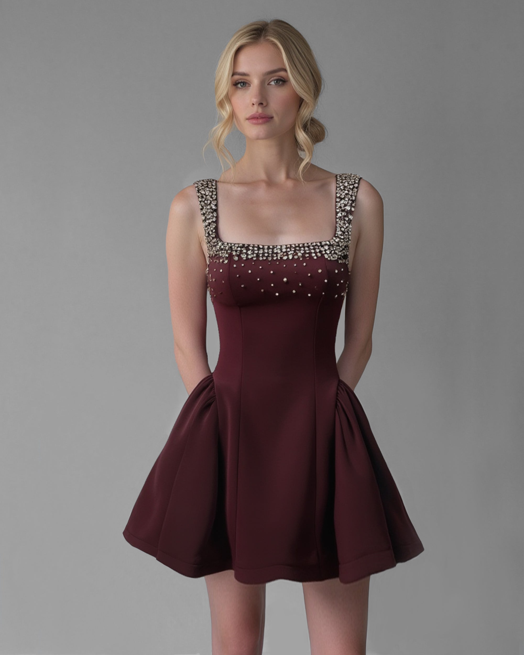Diamante Embellished Flared Mini Dress - Wine Red