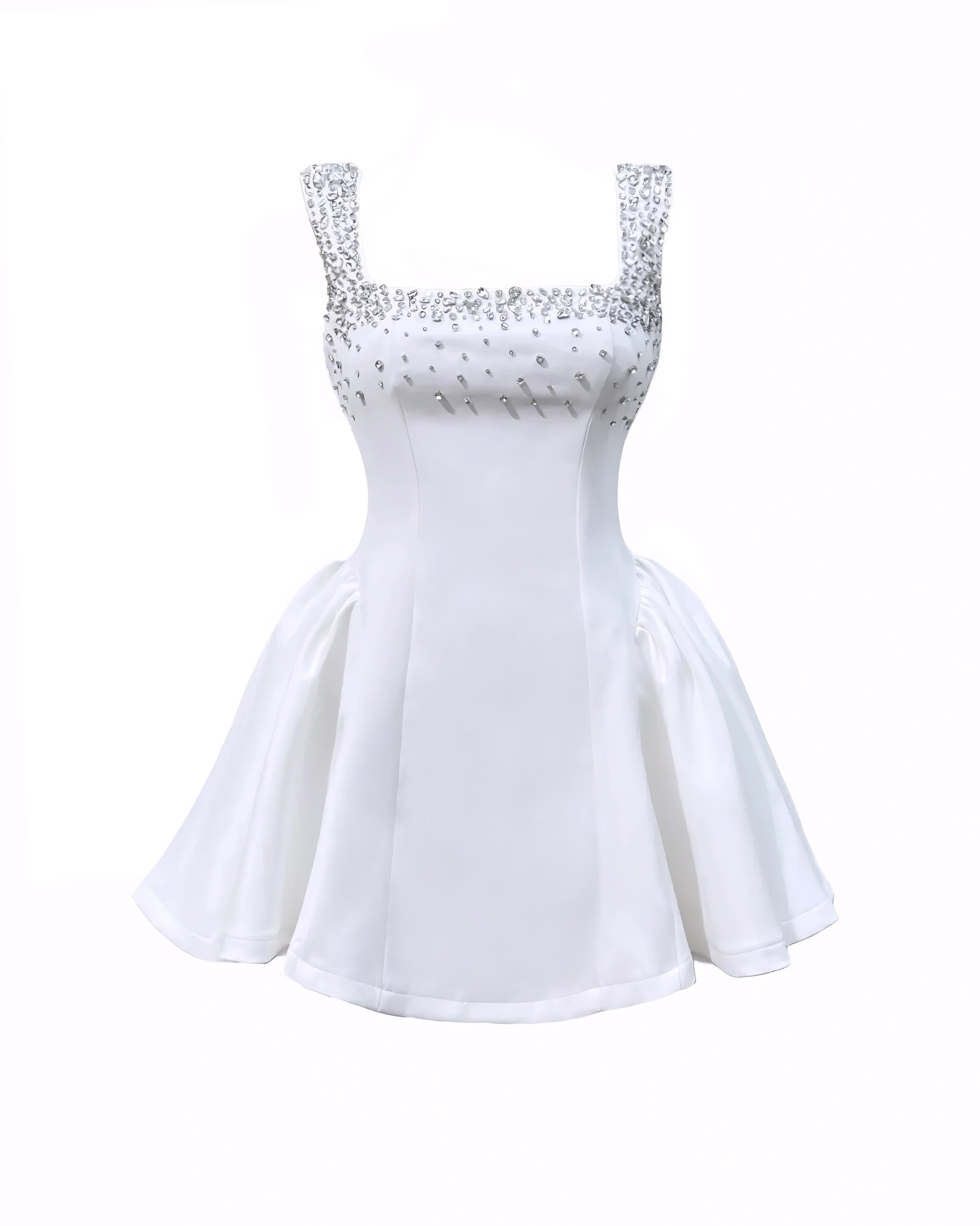 Diamante Embellished Flared Mini Dress - White