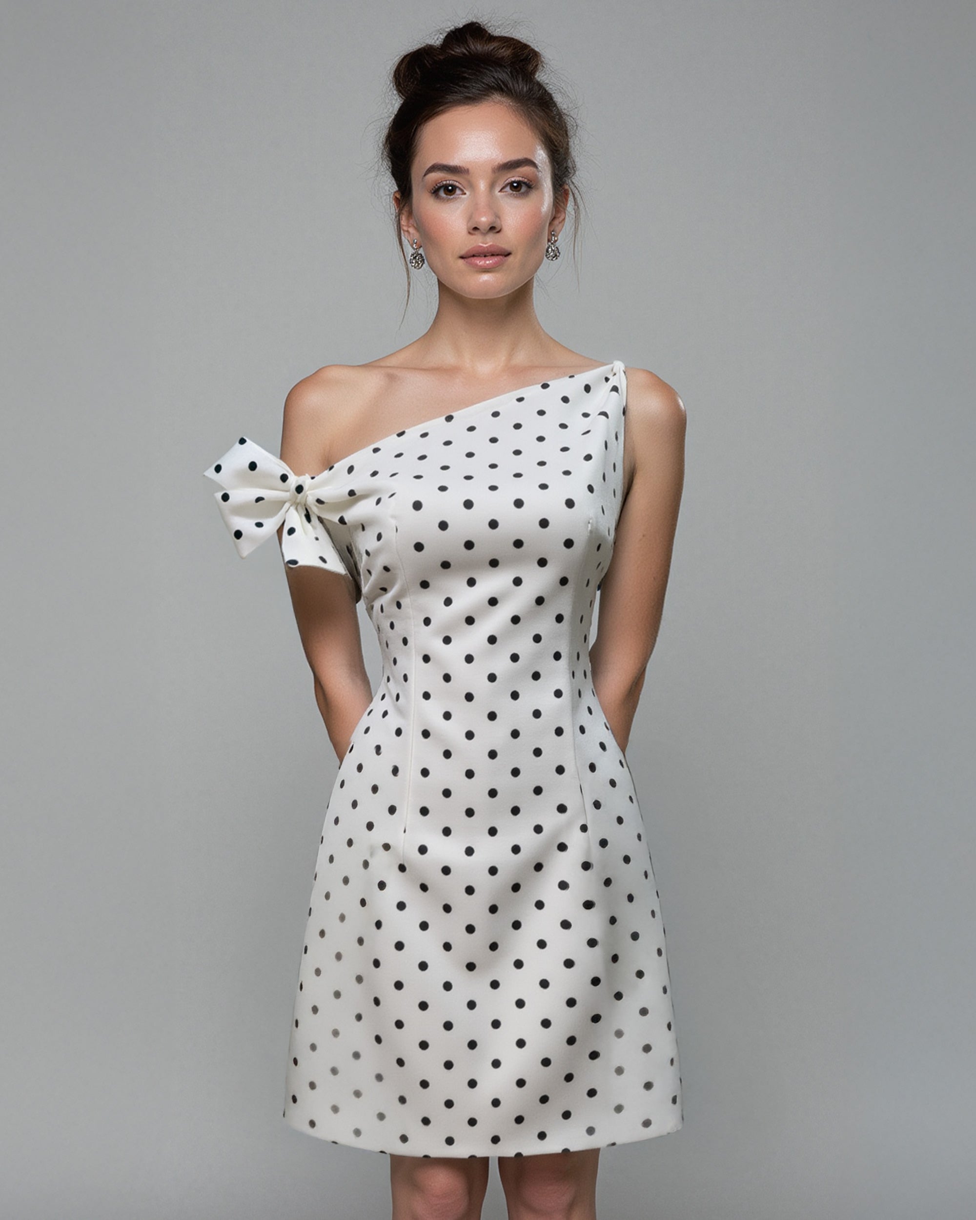 Polka Dot Off The Shoulder Mini Dress - White