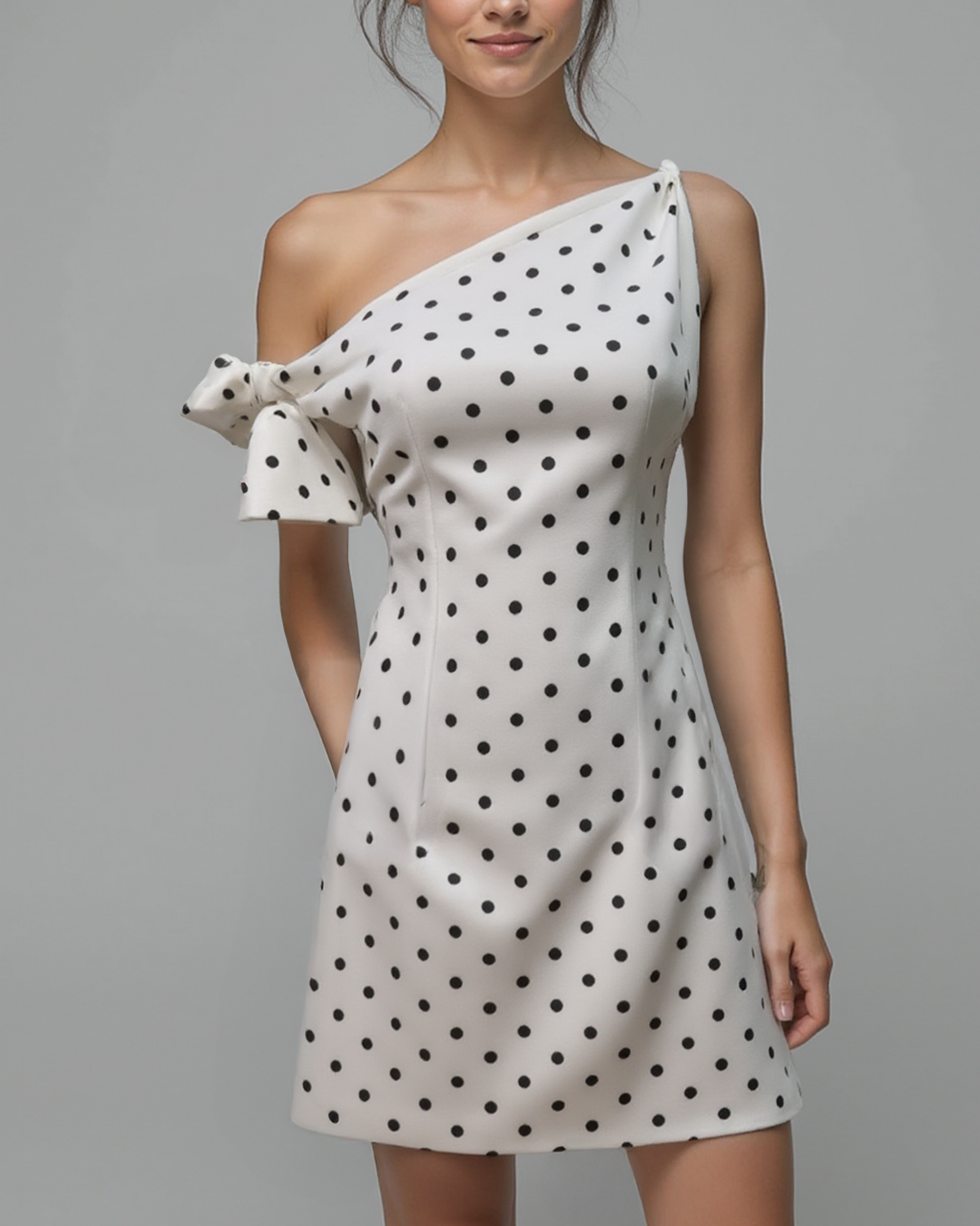 Asymmetric One Shoulder A-Line Mini Dress - Ivory