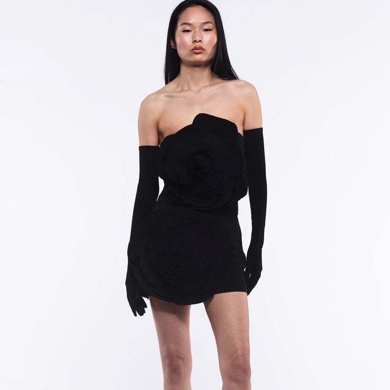 Sexy Red Tube Top Skirt Niche Temperament High-end Decorative Three-dimensional Flowers Dress